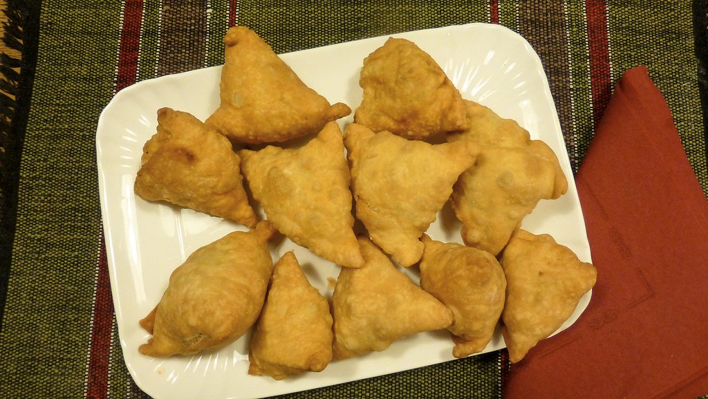 Diced chicken pieces in a spicy masala, wrapped in pastry.