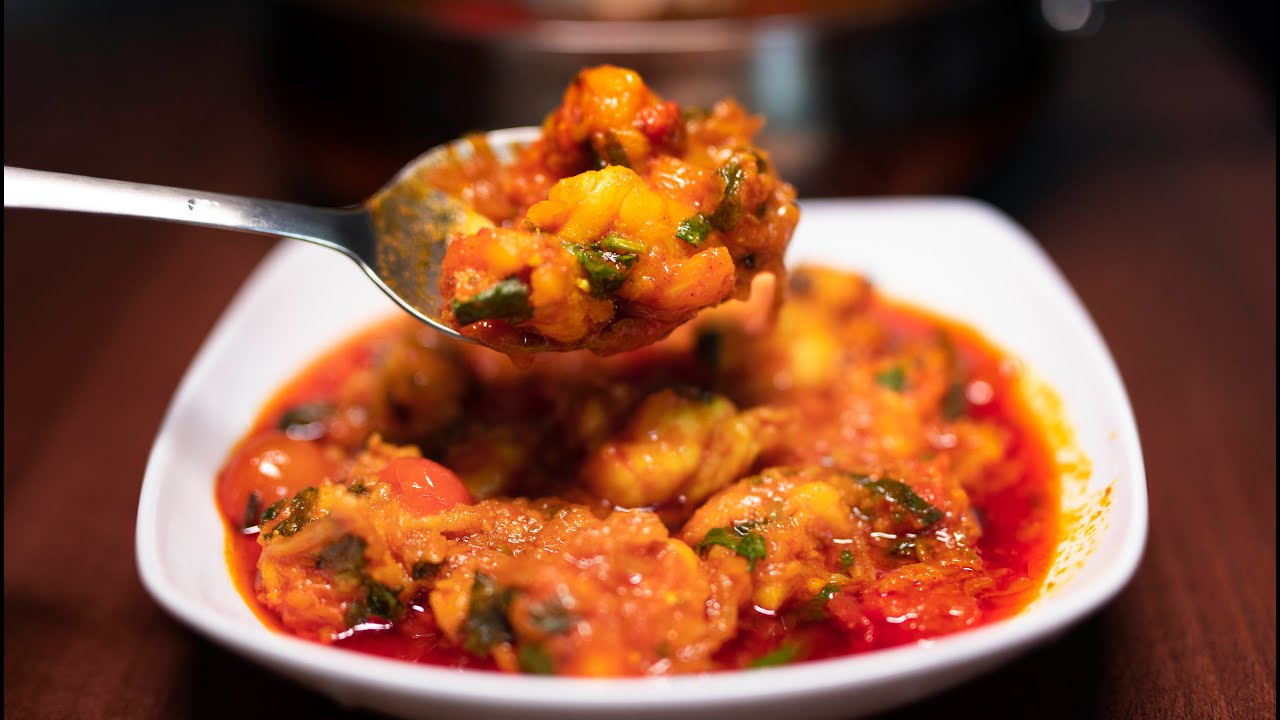 With onions, capsicum, tomatoes, medium hot& fairly dry.