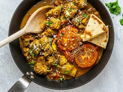Lamb cooked in hot sauce with garlic, ginger, coconut, and aromatic dried spices.