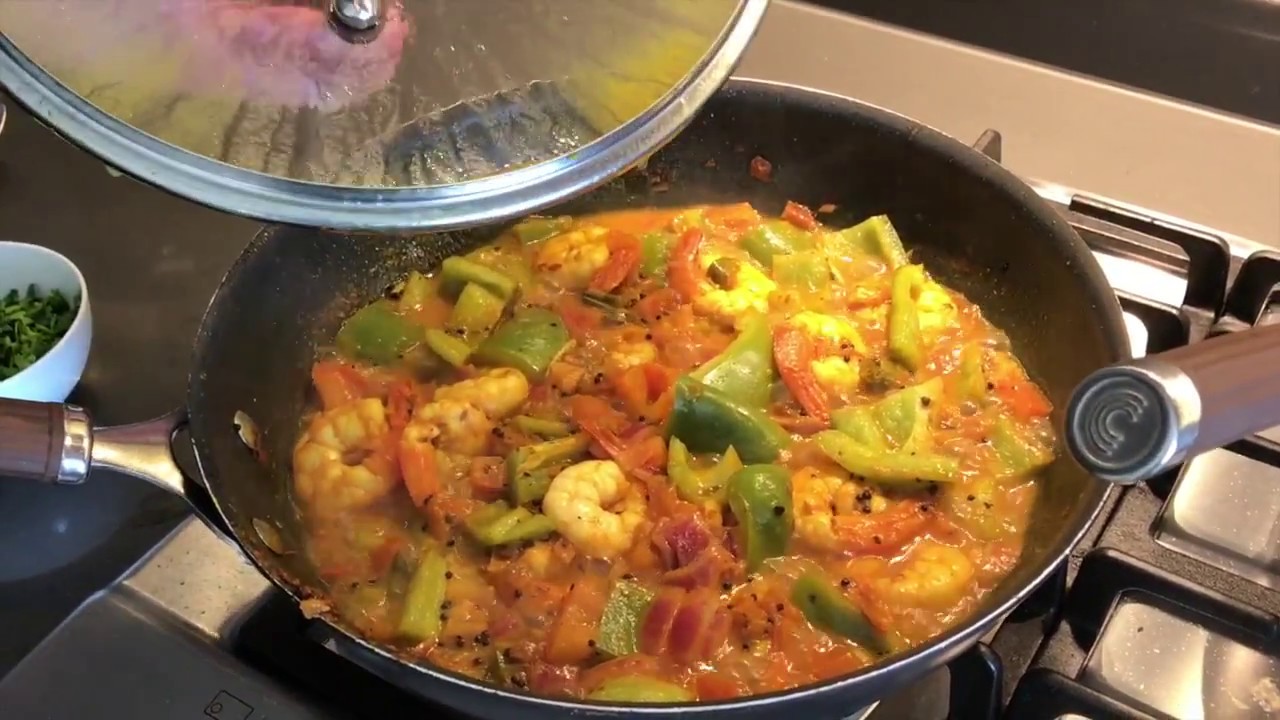 Medium to hot dish cooked in a thick sauce with fried sliced green peppers and onions and green chillies.