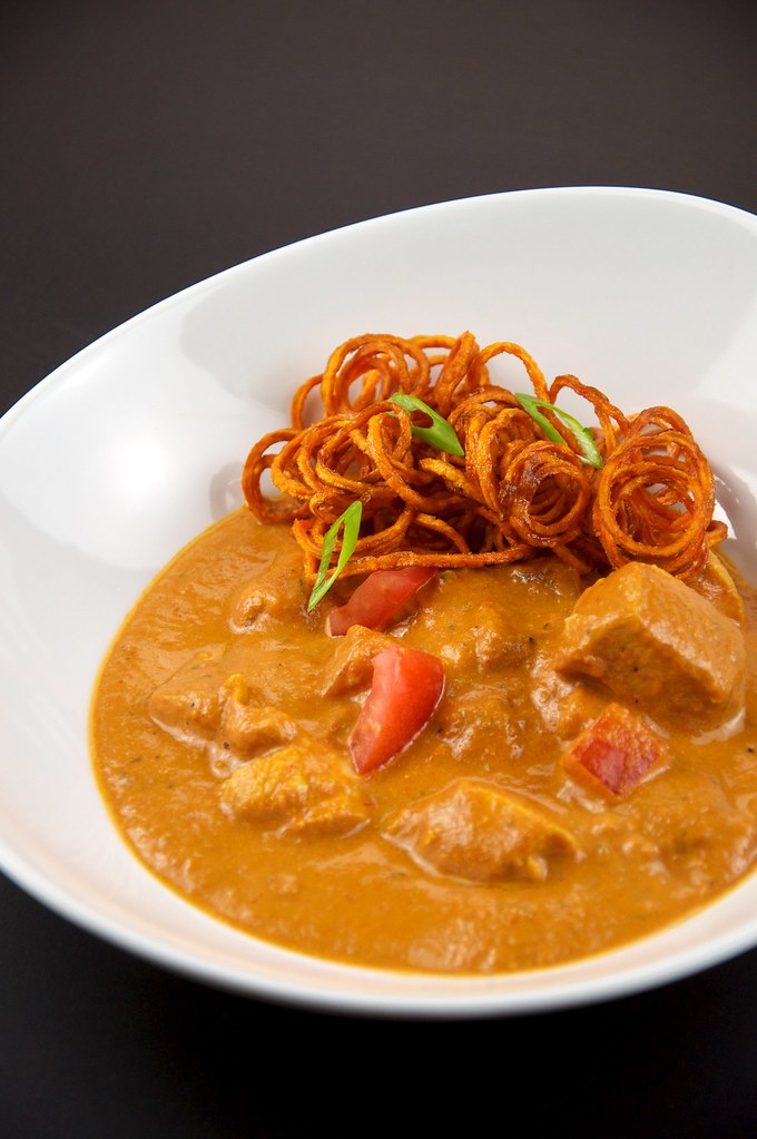 Chicken or lamb, marinated in yoghurt, fresh aromatic spices, cooked in clay oven, stir fried with capsicums and onions, served with salad and mint sauce.